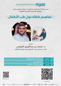 يسر جمعية التنمية الأسرية بالأحساء دعوتكم لحضور برنامج ديوانية الأسرة .. العنوان: مفاهيم خاطئة حول طب الأطفال. تقديم: د.محمد بن عبدالعزيز الخوفي. يبدأ اللقاء الساعة 8:30 مساءًا. للحضور الانضمام...